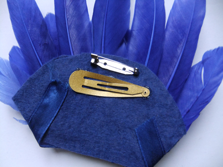 Cca 20 pieces of feather, felt, paper, glue gun, brooch pin, hairclip and I added ribbon